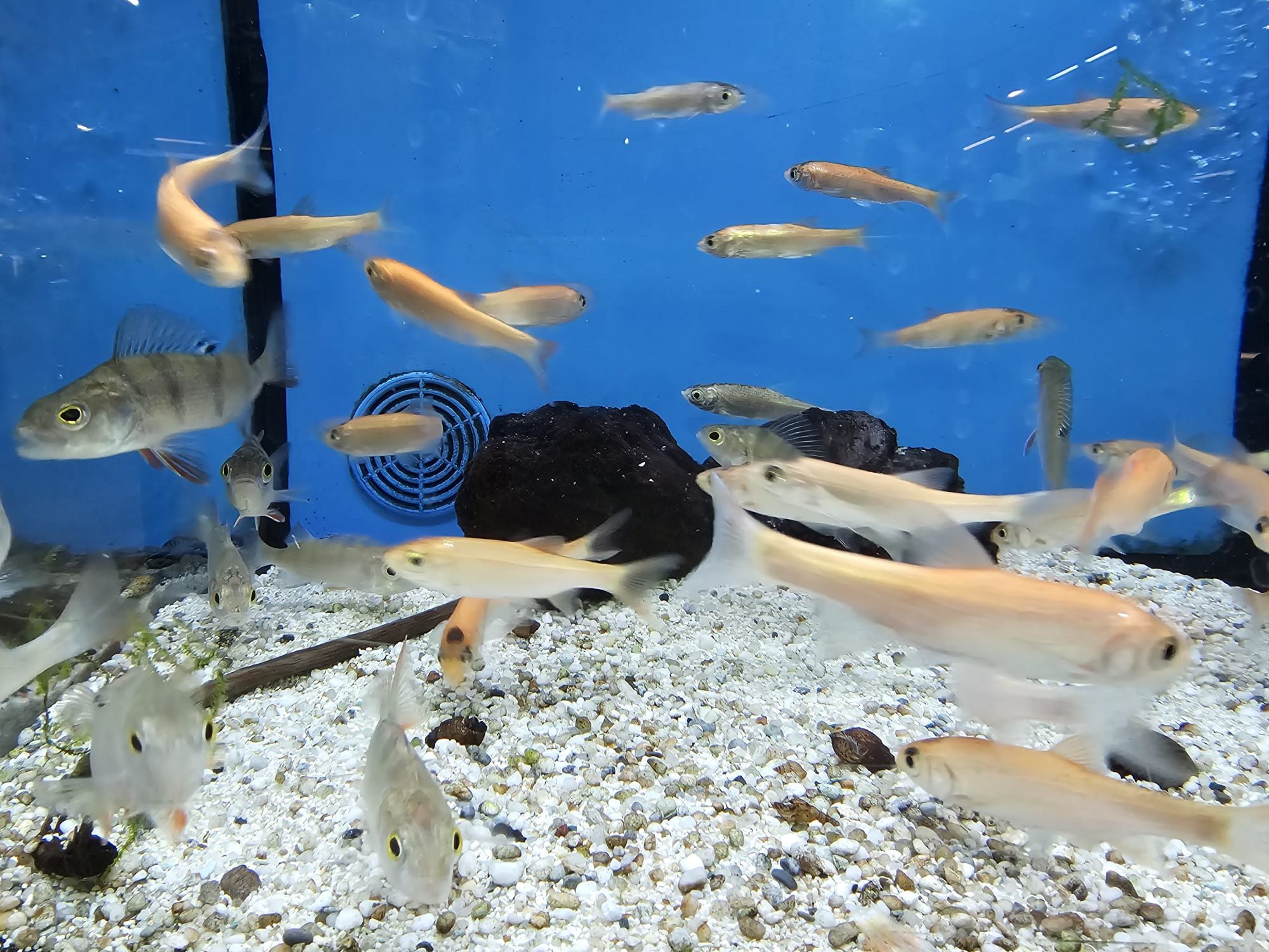 Das einheimische Moderlieschen ist ein anspruchsloser, kleiner Biotopfisch – er wird nur bis zu 9 cm groß. Die friedlichen Tiere sind auch für kleinere Teiche ab 2000 Liter geeignet. Bei einer Teichtiefe von mindestens 80 cm können sie auch im Freien überwintern (der Teich darf nicht durchfrieren). Sie benötigen guten Pflanzenbewuchs zum Verstecken, gute Wasserqualität und eine Wassertemperatur von maximal 25 Grad. Der Schwarmfisch ist ein Allesfresser, er nimmt Trockenfutter sowie Lebend- und Frostfutter. In der Woche vom 20.04. - 25.04.2026 haben wir folgenden Fisch der Woche für Sie vorrätig: Leucaspius delineatus Moderlieschen |